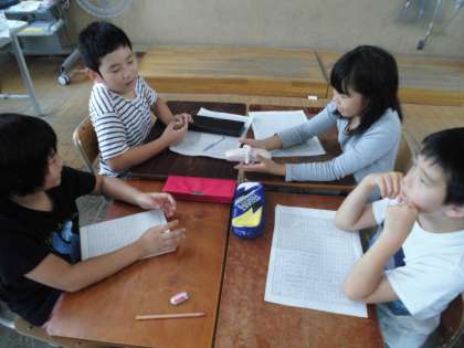自分の考えをまとめた作文を読みながら,よりよく伝える伝え方を話し合いました。