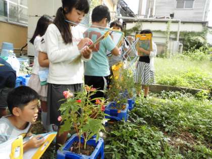 夏休み中に各ご家庭でお世話していただいていた植物を観察しました。