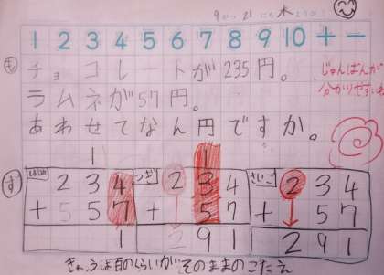 算数科「たし算とひき算のひっ算(2)」では,筆算の計算の仕方について学習しています。
