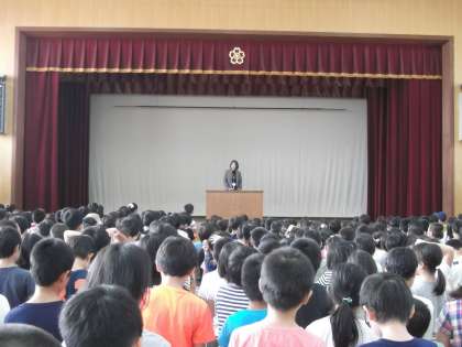 校長先生から,「自分の名前の由来をお家の方に聞いたことがある人?」と尋ねられると,たくさんの子どもたちの手が上がりました。「名前」には,お家の方の「こんな人になってほしい」という思いや願いが込められています。「名前」を大切に,「名前」に込められた思いや願いに応えられるような人になれるよう,後期も1日1日を過ごしていってほしいと思います。