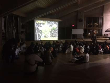 予定では,天体観望でしたが,天気が悪くてできないので,プレイホールで花背の自然について勉強しました。