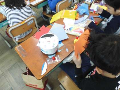 図画工作科の学習で,「はこかざるんるん」をしました。