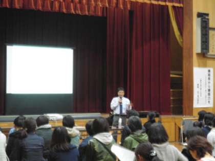 19時より「第2回家庭教育学級・家庭地域教育学級」を行いました。講師は,八幡市立男山第三中学校の山下信之先生です。「睡眠育から睡眠力を〜子どもを伸ばす「眠り」を考えよう〜」がテーマでした。山下先生が担任時代から生徒たちに指導する時に大切にされていたことは,「あたたかい心」だそうです。心は大脳のはたらきの一部であり,脳は様々な体のはたらきを調節しているということから,「あたたかい心」を育てるには,脳を元気にさせる「睡眠」が大事だというお話でした。具体的なデータも提示しながらの説得力のあるお話でした。「早寝・早起き・朝ごはん」を大切にして,日頃から家庭でも学校でも取組を進めていかなくてはなりません。