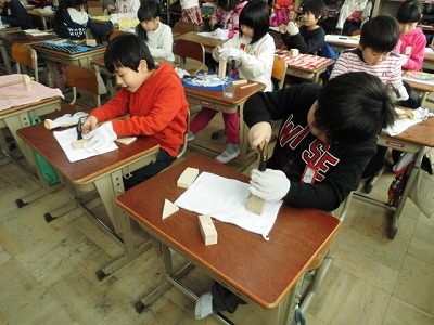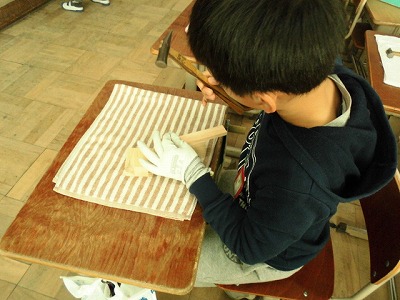図画工作科の授業で,くぎうちをしました。