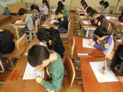正しい鉛筆の持ち方を始めにきちんと覚えることが大切です。また,正しい姿勢も意識して書きました。