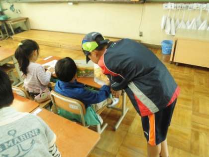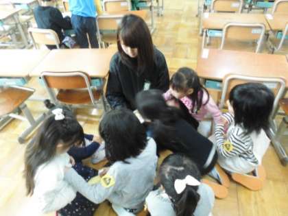 6年生が絵本の読み聞かせをしてくれたり,教室でできる簡単な遊びを教えてくれたりしました。