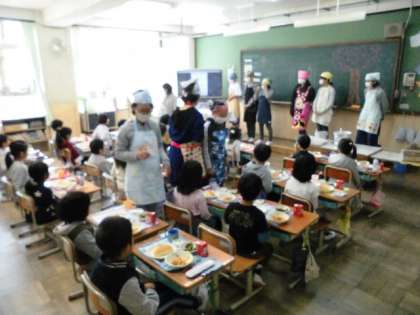 あまりにすばやすぎて,となりの1年3組では配膳終了。
