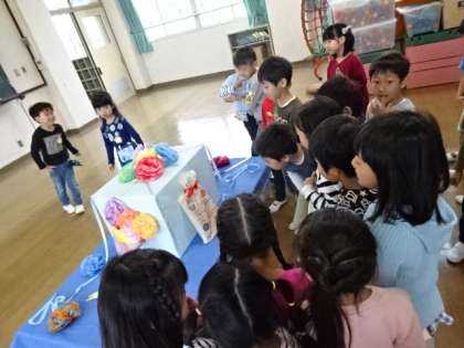 そして今日。この子どもたちの真摯な願いを聞きつけた「春の妖精」から,植木鉢のプレゼントが届いたのです。子どもたちは大興奮。植木鉢を大切に受け取り,お礼に『ちょうちょう』の歌を歌っていました。
