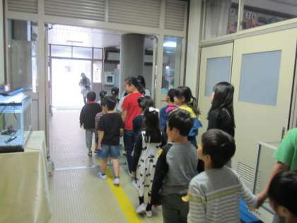 大きな声で自分の名前を言った後,2年生から6年生の子たちの前に座りました。