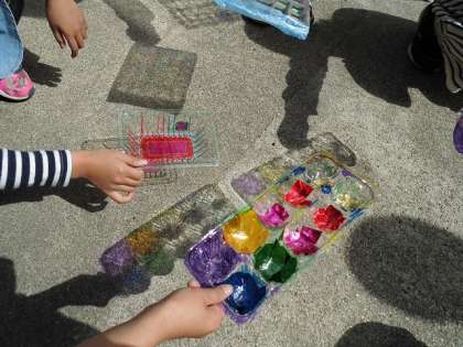 太陽が出ると,浮かび上がる素敵な模様を見て,子どもたちからは大きな歓声が上がっていました。