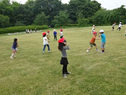 それから,芝生でおにごっこをしてかけまわりました。梅小路公園の中で自然を満喫している様子でした。