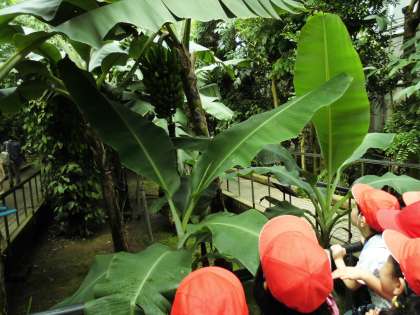 サボテンや,バナナの木,夜に咲く花など,子どもたちは初めて見るものばかりで目を輝かせ,観察していました。