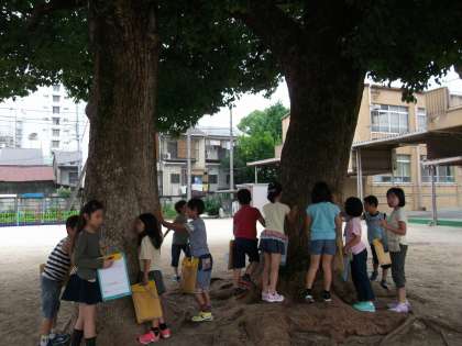 『総合的な学習の時間』では,七条小学校のすきなところ,特に「クスノキ」について調べています。