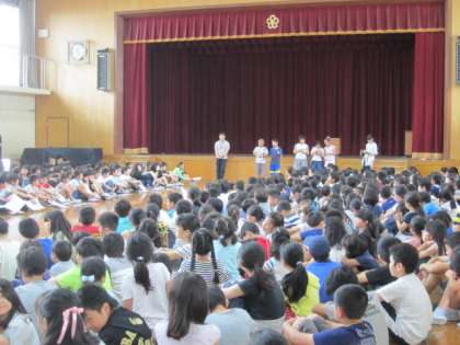 楽しみすぎて,静かになるまでに少し時間がかかりましたが,児童会の子たちから始めの言葉と説明を受け,各グループ出発です!!