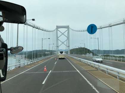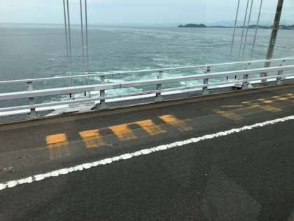 大鳴門橋を渡っています。渦潮で有名なところです。バスからでも,潮の流れが見えます。