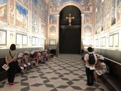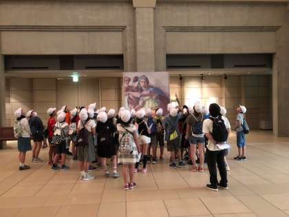 陶板の作品ですが,原画と同じ大きさということで,写真やテレビなどでおなじみの作品に見入っている児童です。