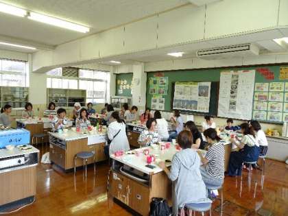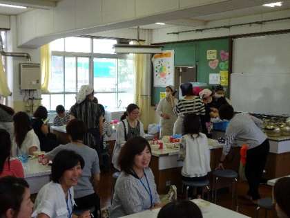 PTAの方が給食当番と同じように給食室から給食を運び,配膳していきます。