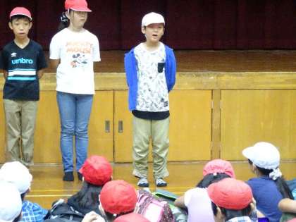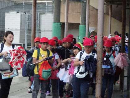 「時間を守ること」「あいさつをすること」など普段の学校生活でも大切なことを宿泊学習でもできるように取り組みます。出発式を行い,元気に出発しました。