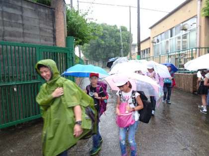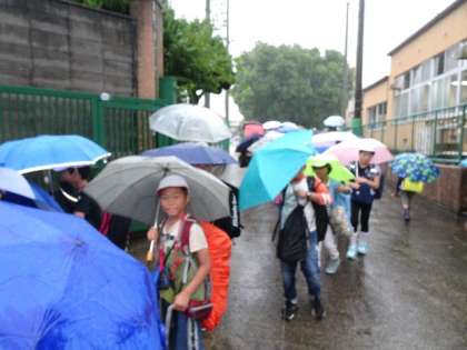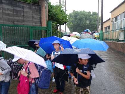 出発は,あいにくの雨となりましたが,4年生のみんなは,「自然を体で感じよう!友達と力を合わせて助け合おう!」のスローガンのもと,元気に出発しました。