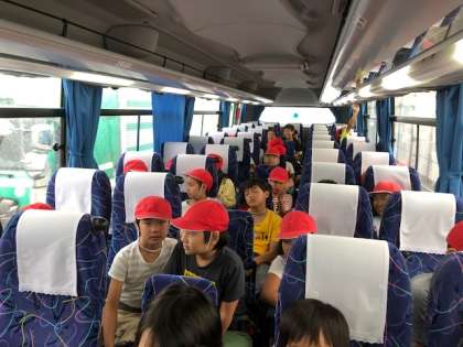 バスの中で,みんな元気に過ごしています。
