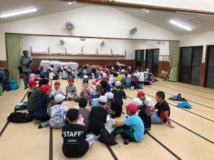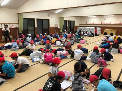 90畳の部屋で,全体会,次に係で,そして最後に班で反省会を行います。