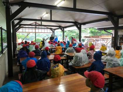 昨日しかけたかごを引き上げます。所員さんの説明を聞いて,引き上げてみると…。