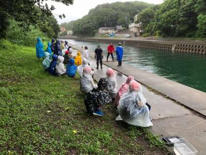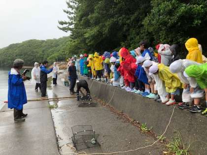 かご漁でしか,みかけない魚が入っています。学校の水槽にいる魚と比べて,いろいろな特徴がみつけられそうです。貴重な体験となりました。