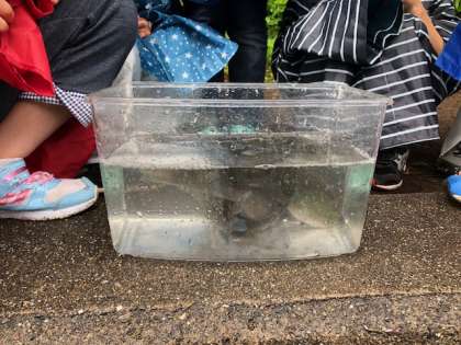 深谷水道に沿って上からのぞくと,魚らしき影は見えるのですが,真横から見ることができるのは魚の特徴がよくわかります。