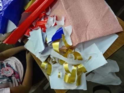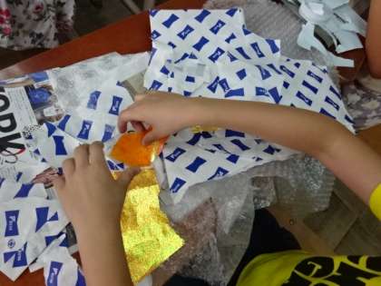子どもたちは,持ってきた紙を豪快にちぎって,楽しそうに活動していました。