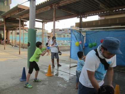少年補導の夏まつりでは,いろいろな趣向を凝らしたゲーム会場があります。