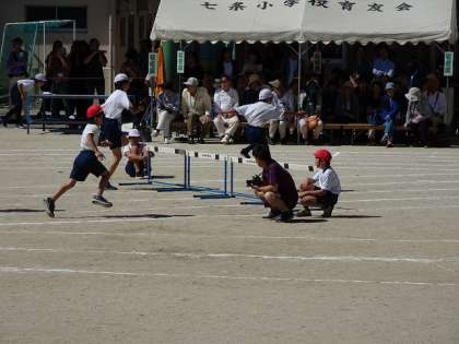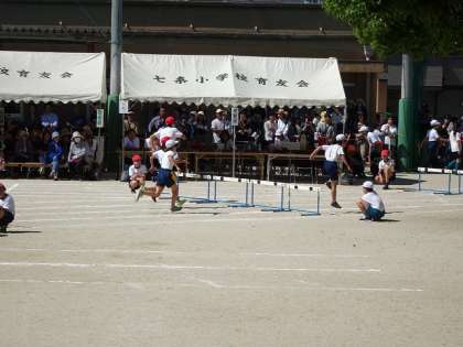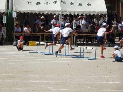 6年生のハードル走です。リズムよくスピードを落とさずに走り抜けます。