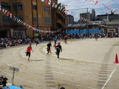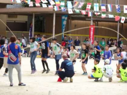 午前中は,七条小の児童もいろいろな競技に,また得点を渡す係として活躍しています。「班対抗みんなでジャンプ」では,練習の成果がでたでしょうか。