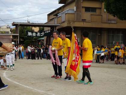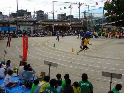 午後の後半もたくさんの競技がありました。愛情測定,ボール送りリレー,班対抗リレー,綱引き,リレーの決勝などです。それぞれの競技に,気持ちのよい汗をかいておられました。リレーの決勝は,白熱しており,大きな歓声が応援席から湧き上がってきました。
