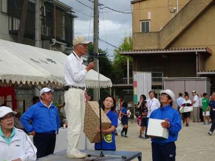 競技のあとには,大抽選会がありました。子どもたちが番号のカードを握りしめ,役員の方が読まれる番号に一喜一憂していました。