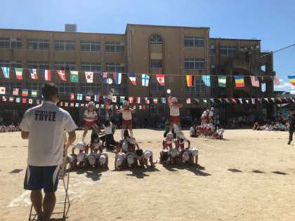 一人ひとりの子どもたちが,真剣な表情で『組体操』を行っていました。