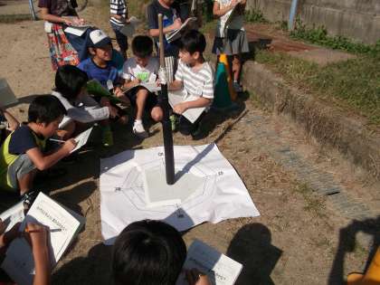 理科の学習で,「太陽のうごきと地面のようすをしらべよう」という学習をしています。