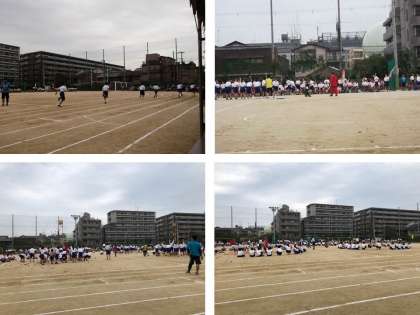 『入場行進』の後,『開会式』が行われ,男子・女子の100m走をはじめたくさんの競技や演技が行われました。