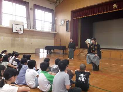 子どもたちの目がキラキラと輝いていて,本物に触れることの大切さを感じました。この体験を通して「狂言」に興味を持った子どもたちも多くいたようです。