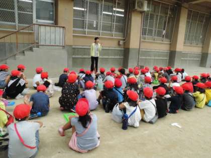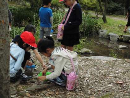 梅小路公園に着くと,グループにわかれ生き物を探しました。
