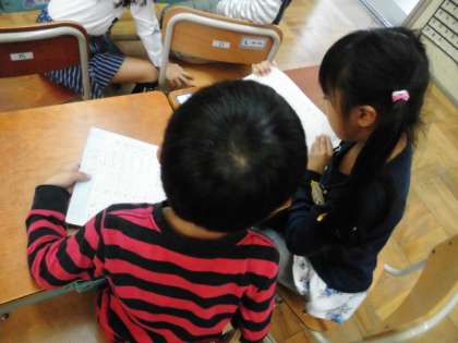 二人組で交流しながら,おもしろいところや上手にできているところなどを褒め合っていました。