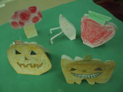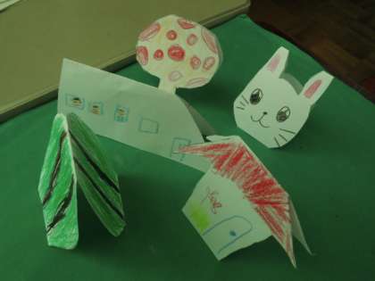 図画工作科『おって たてたら』の作品の一部です。