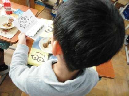 食の指導の後,給食の時間となりました。子どもによっては,献立の中に苦手な食べ物もあるようでした。さっそく,自分で考えた「おまじない」を使いながら食べていました。