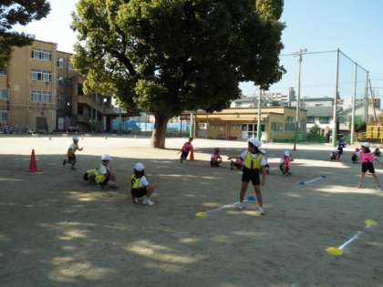 おりかえしリレーの方法で競争することを楽しんでいます。