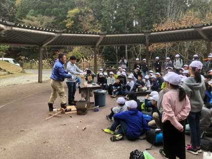 火の起こし方について,所員さんの説明を聞きます。