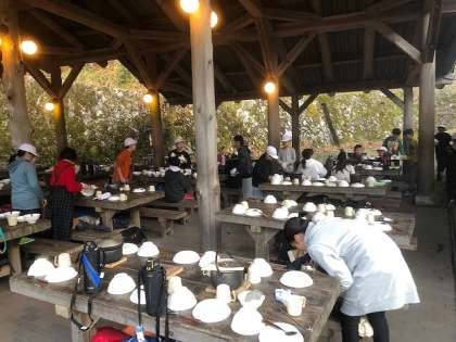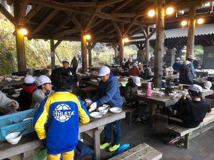 できあがりを楽しみに,かまど係さんが火加減を見ているところでしょうか。