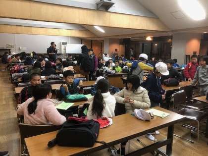 天体観望会はクラスごとに望遠鏡を覗いていくので,待ち時間に,研修室で今日一日の振り返りをしたり,ゲームをしたりしました。