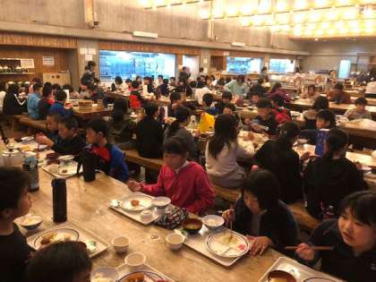 夕食の様子です。おかわりに並んでいる子もいます。