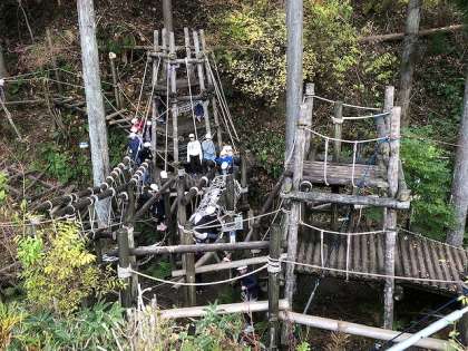 滑車にぶら下がるスライダー。長ーいつり橋。学校にはない遊具ばかりです。第一炊飯場に行く途中に見えているので,子どもたちもずっと興味津々だったことと思います。