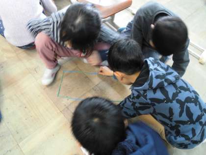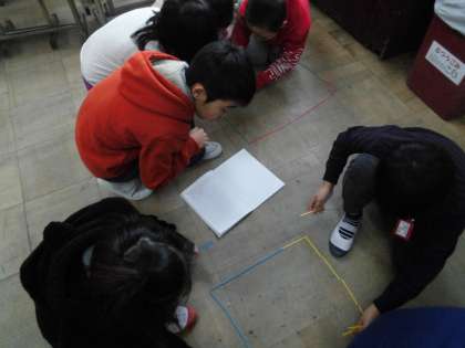 算数科の学習では,数え棒を使って四角形を作り,そこから縦と横の長さの変わり方を調べていきます。