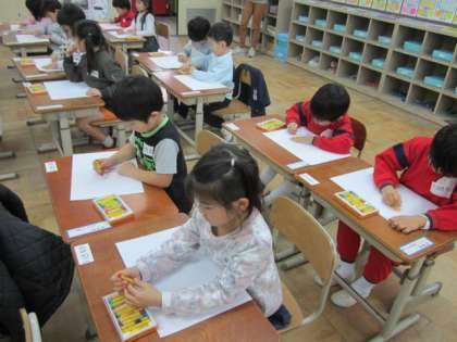 受け付けが終わると,児童は教室へ行き,絵を描いたり,歌を歌ったり,折り紙をしたりといろいろな体験学習を行いました。